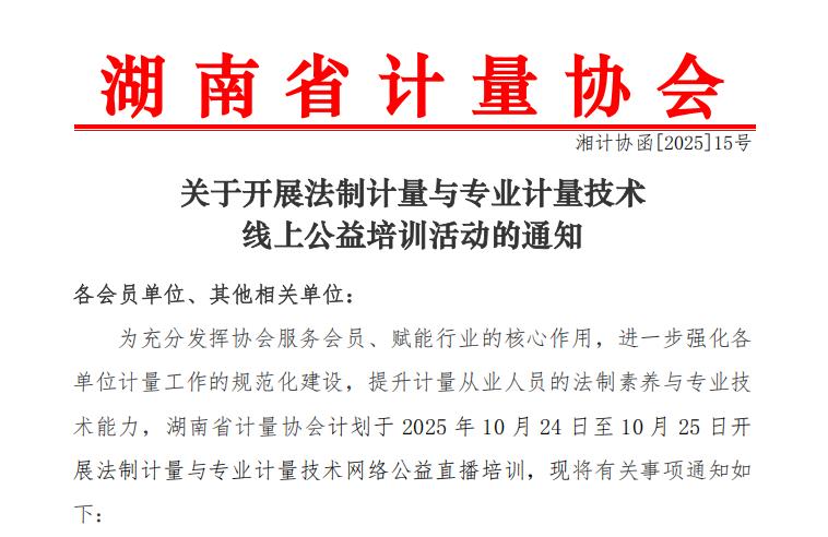 关于开展法制计量与专业计量技术线上公益培训活动的通...